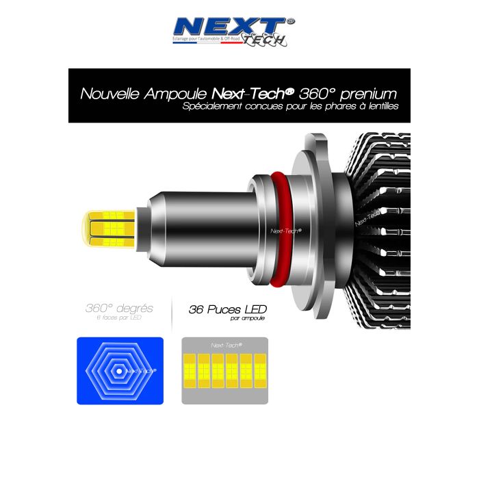 Caractéristiques technique du kit ampoules LED HIR2 9012 85W 360° blanc - Next-Tech® :